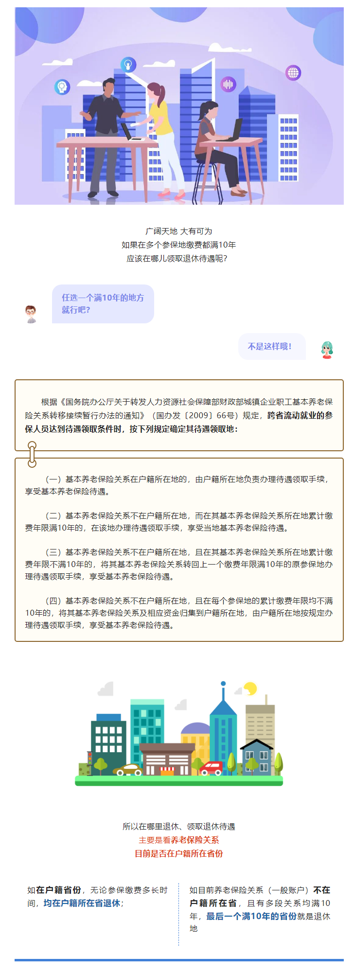 在多個參保地繳費都滿10年,在哪兒領取退休待遇?